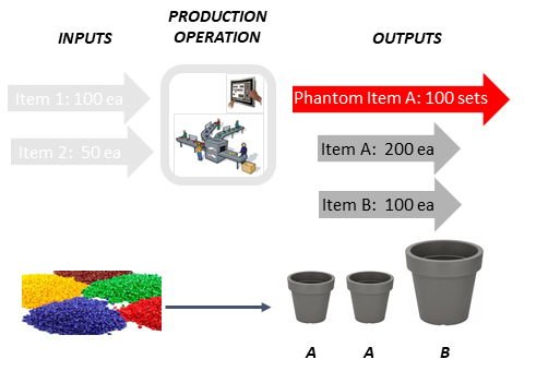 The phantom item itself will not be found back in inventory or items but will act as an overarching entity under which several existing items can be collected and will collectively be considered as output of the operation.
